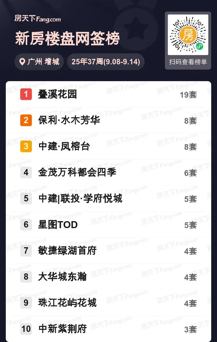 从成交分布来看,榜单前十楼盘成交量均超过3套,中新紫荆府以3套守住第十位。凤榕台、学府悦城等教育配套突出的项目表现稳健,预计随着开学季到来,这类楼盘关注度将持续走高。你会考虑在增城上车吗?欢迎分享你的购房故事