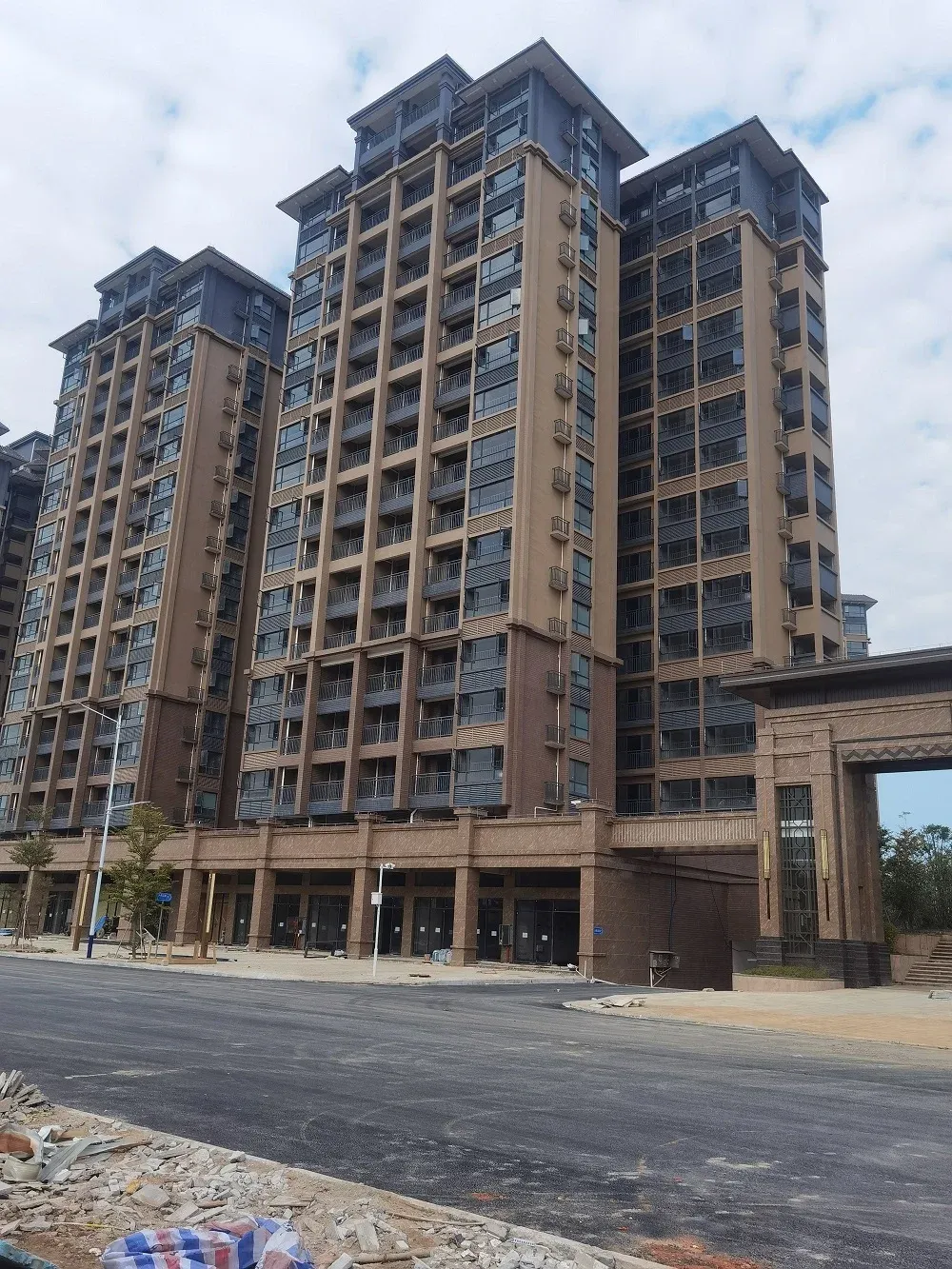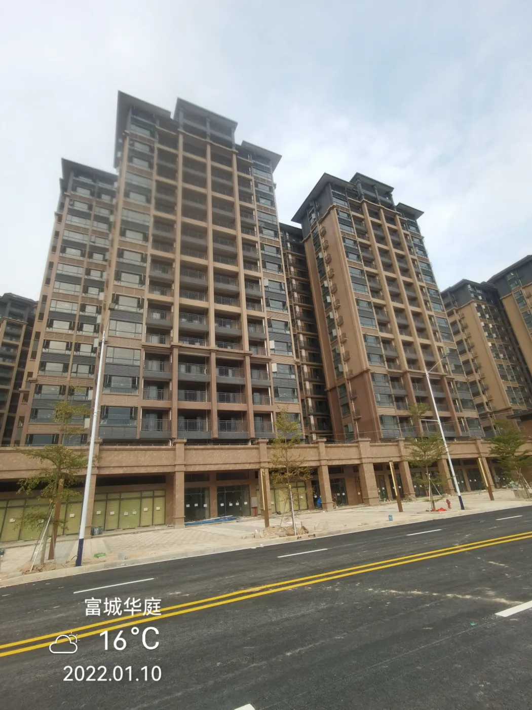 增城刚需盘「富城华庭」最新效果图曝光啦!🎉 项目由广州烨枫能源开发,主推低密花园洋房,容积率仅2.0,35%超高绿化率搭配象山路江景资源🌊。新释放的景观效果图显示,楼栋采用阶梯式布局,外立面以米白色为主,与周边山景形成鲜明对比🏞️。