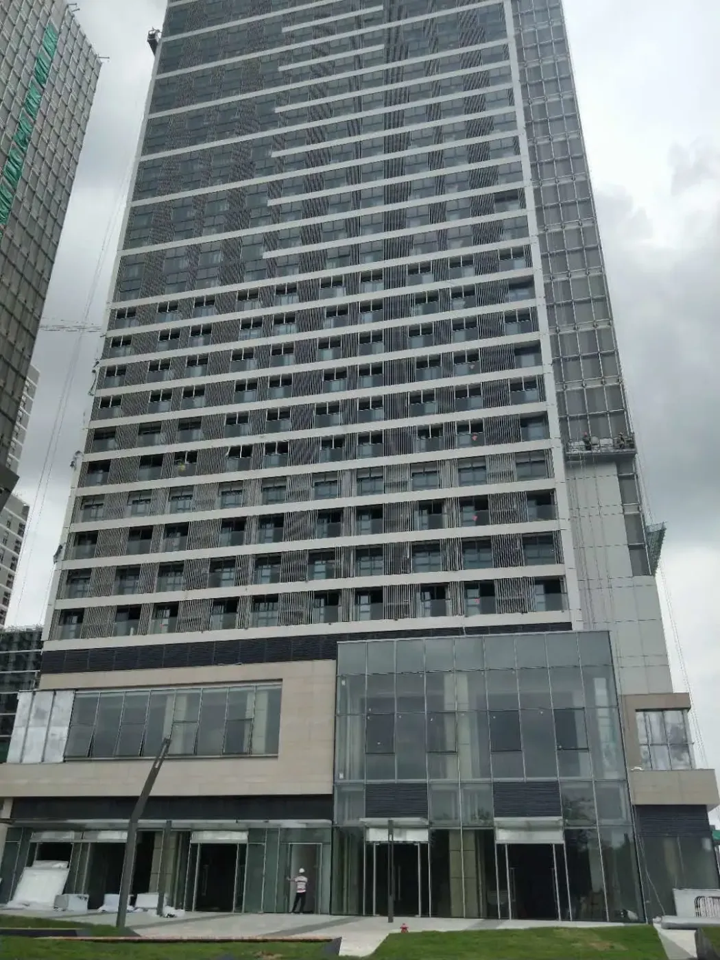 南站万科中心最新效果图释出🎉!项目位于番禺石兴大道与汉溪大道交汇处,属地铁沿线项目🚇,主打低总价复式小户型。开发商为广州市万霓房地产有限公司,容积率16.60,绿化率达31.8%🌳。新效果图展现了现代简约外立面与社区景观,值得关注✨