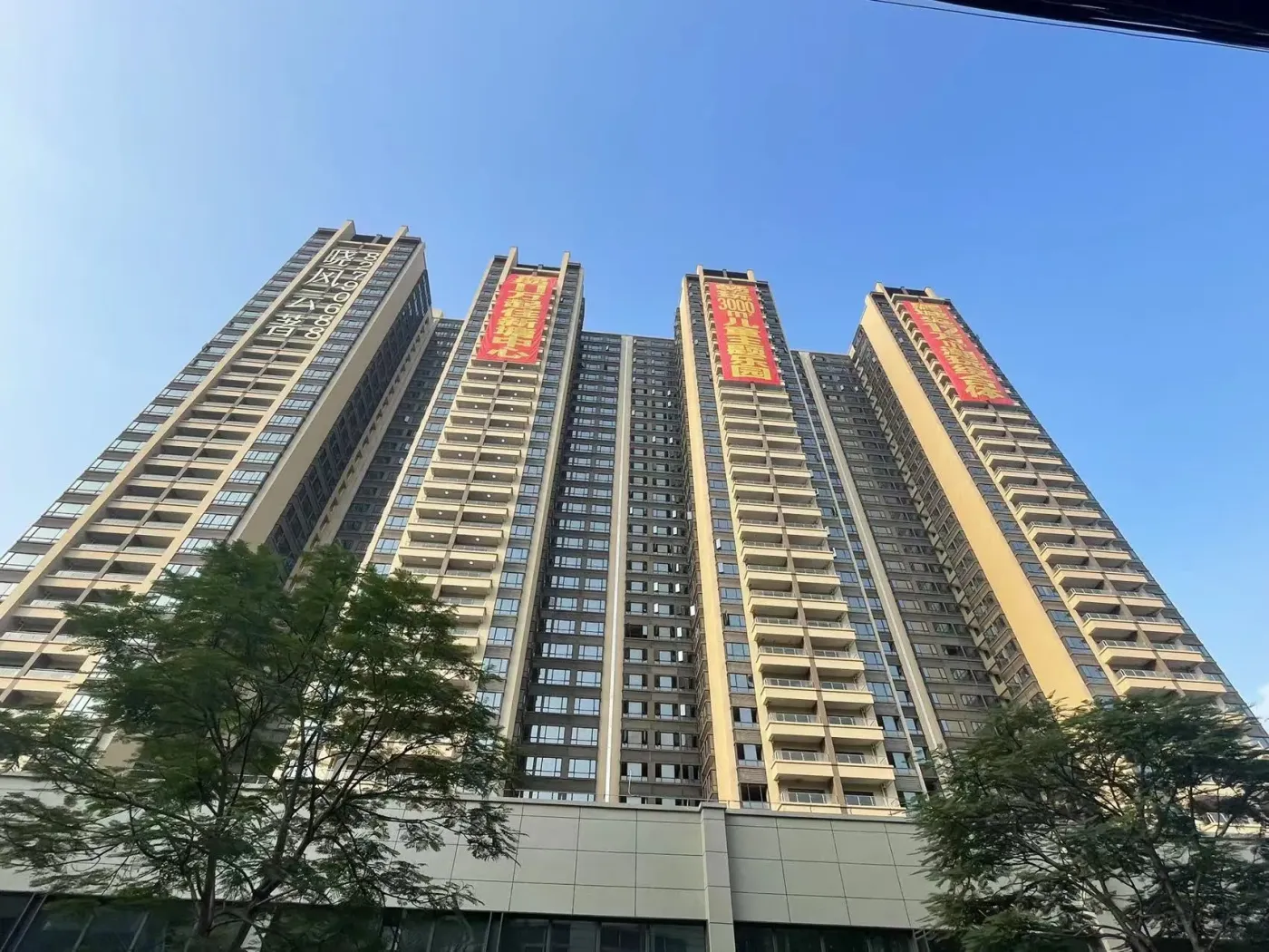 增城解放北路150号的晓风云著项目最新效果图释出!🏗️由广州百筑开发的地铁沿线准现房,以13000元/㎡的参考价引发关注。新曝光的图片展示了建筑外立面与社区景观雏形,30%绿化率搭配现代风格设计,呈现低密宜居感。