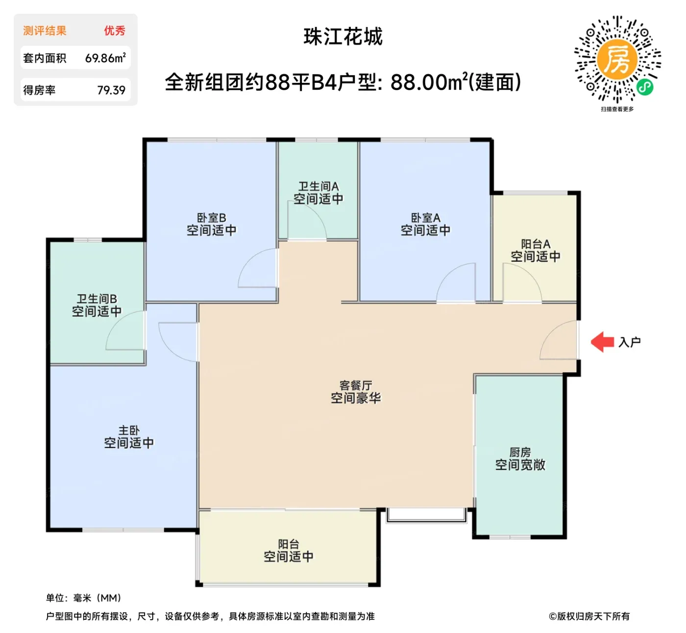 能把76㎡做成3+1房,日常带娃和亲友小住能灵活切换。88㎡四房甚至能偷出独立家政间,烘干机、洗地机全安排上。对比同面积段产品,相当于白赚一间多功能房,这波空间魔术我给满分!