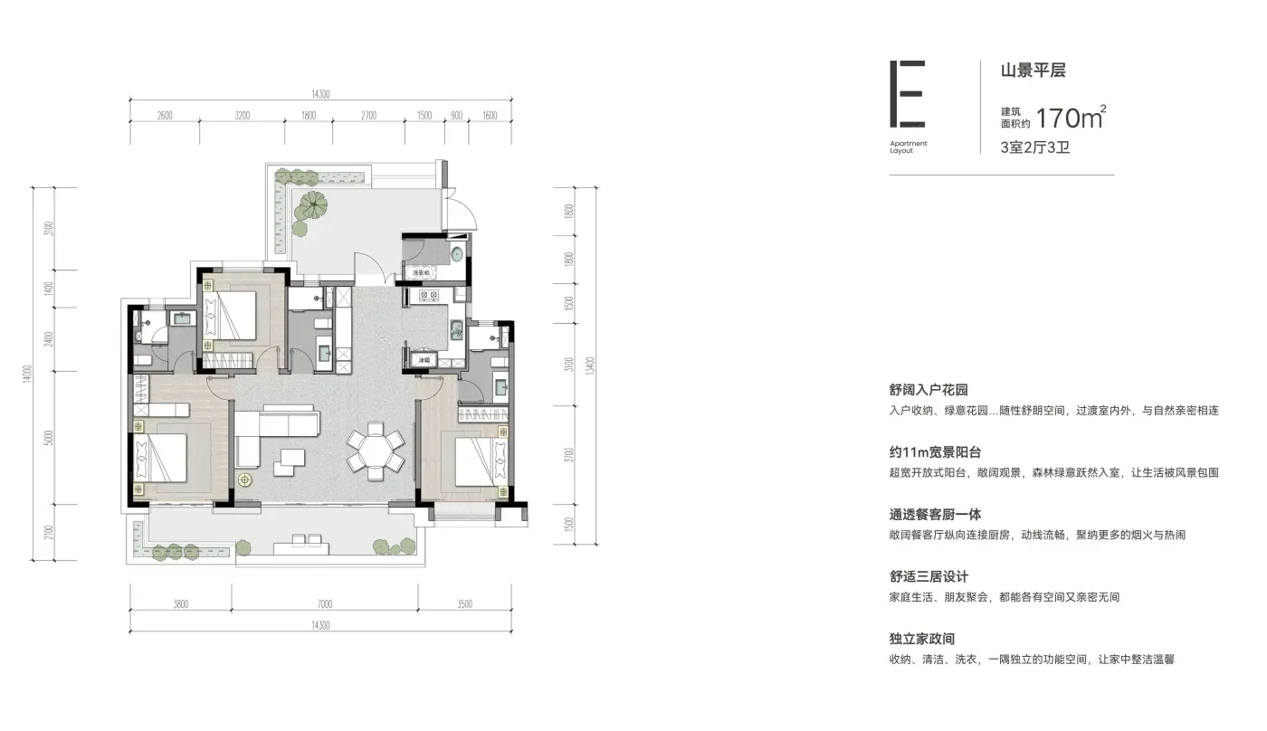 ❶ 空间改造魔法:170㎡大平层实得340㎡?双层挑空露台把山色框进客厅,飘窗秒变270°观景卡座。但要注意户型跨度大,最小100㎡公寓层高仅3米,空间压抑感需谨慎考量。