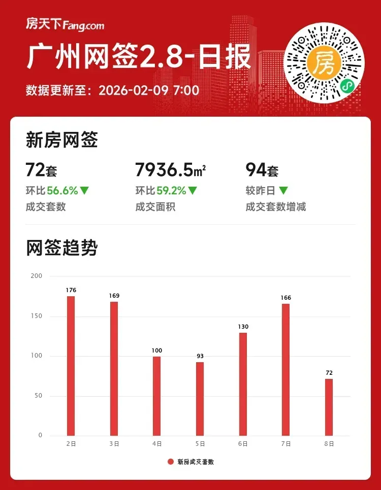 成交套数:72套 ↓56.6%(较昨日减94套)