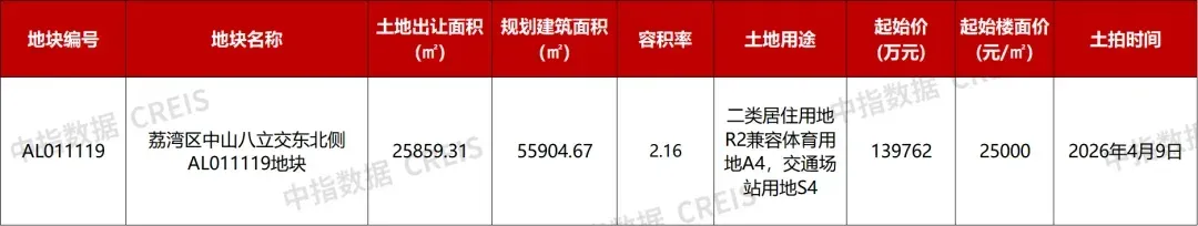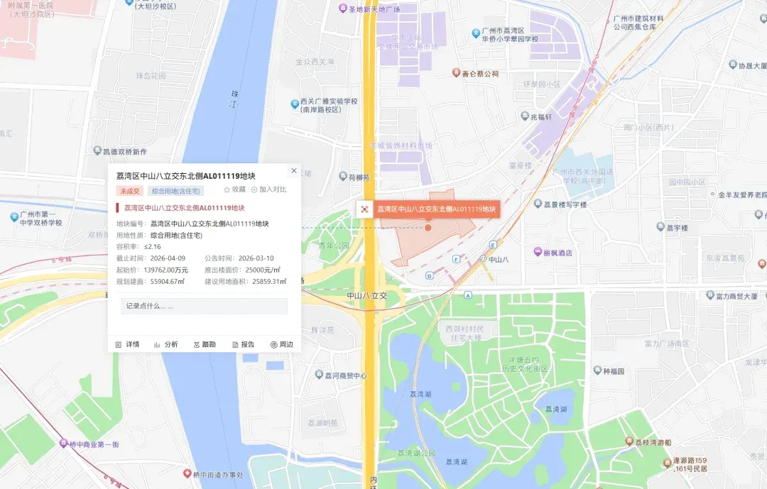 📅 截至目前,广州4月份已公告1宗荔湾区涉宅用地将于4月9日出让。