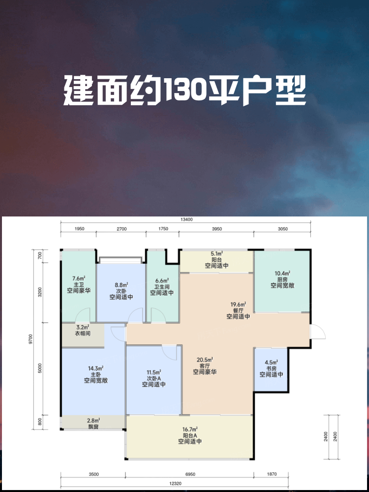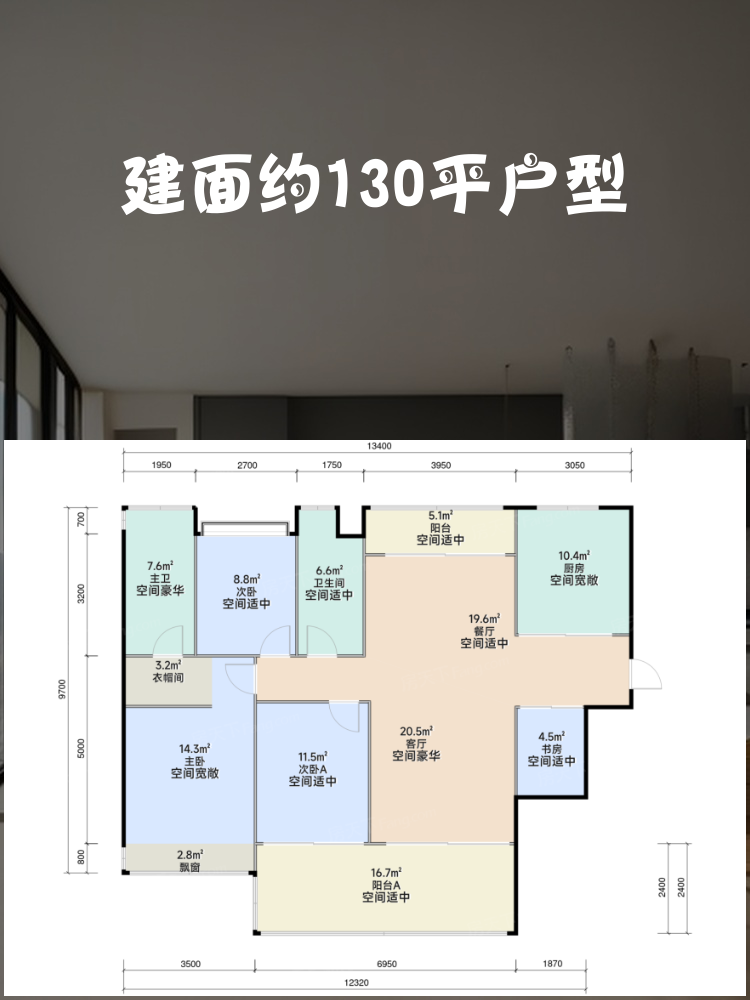 📐 建面约130平户型:4室2厅2卫