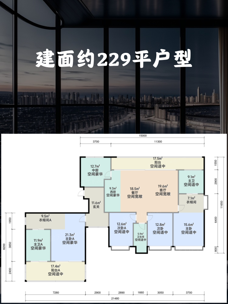 📐 建面约229平户型:4室2厅3卫