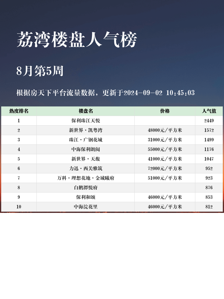 🏅 **第一名:保利珠江天悦**