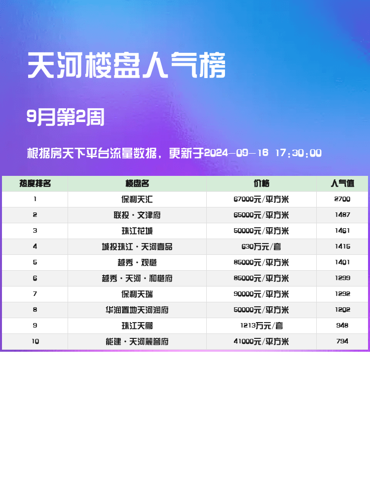 下面就来看看天河区人气楼盘榜单的前三名吧!✨