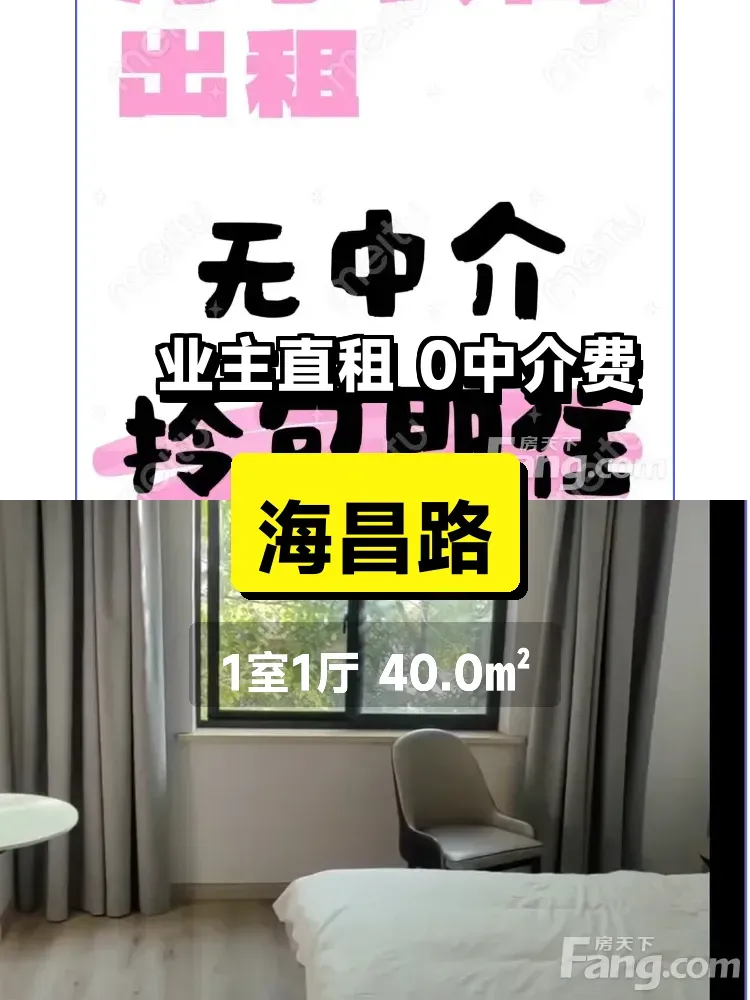 标题:自家温馨小窝出租啦🏠海昌路地铁旁40平仅900/月