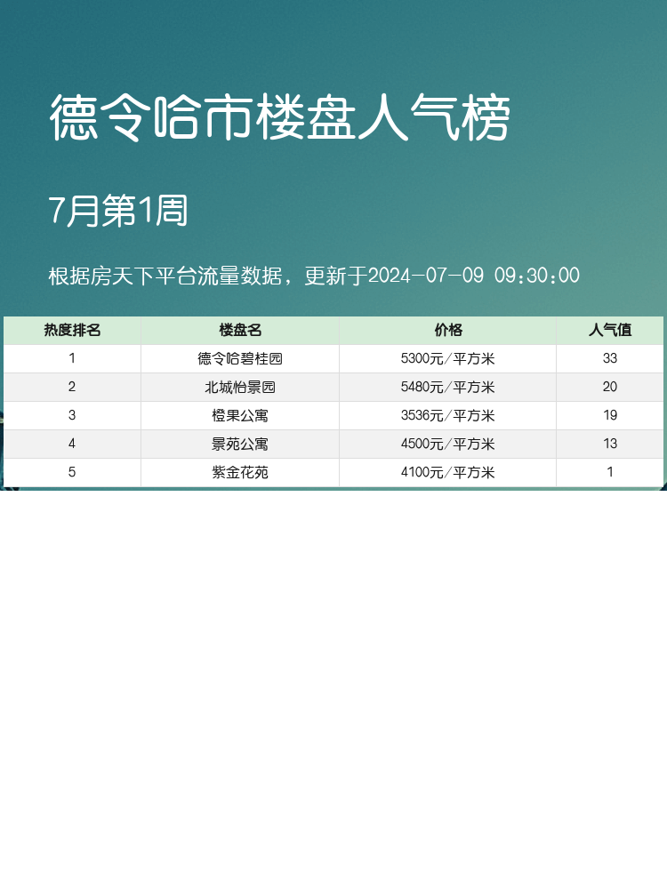 购房者们看过来!在当前竞争激烈的房地产市场,选择一个合适的楼盘变得尤为重要。🏡今天我们为大家带来了德令哈市的人气楼盘榜单,希望能为您的置业之路提供有价值的参考。📊一起来看看前三名有哪些特色吧!