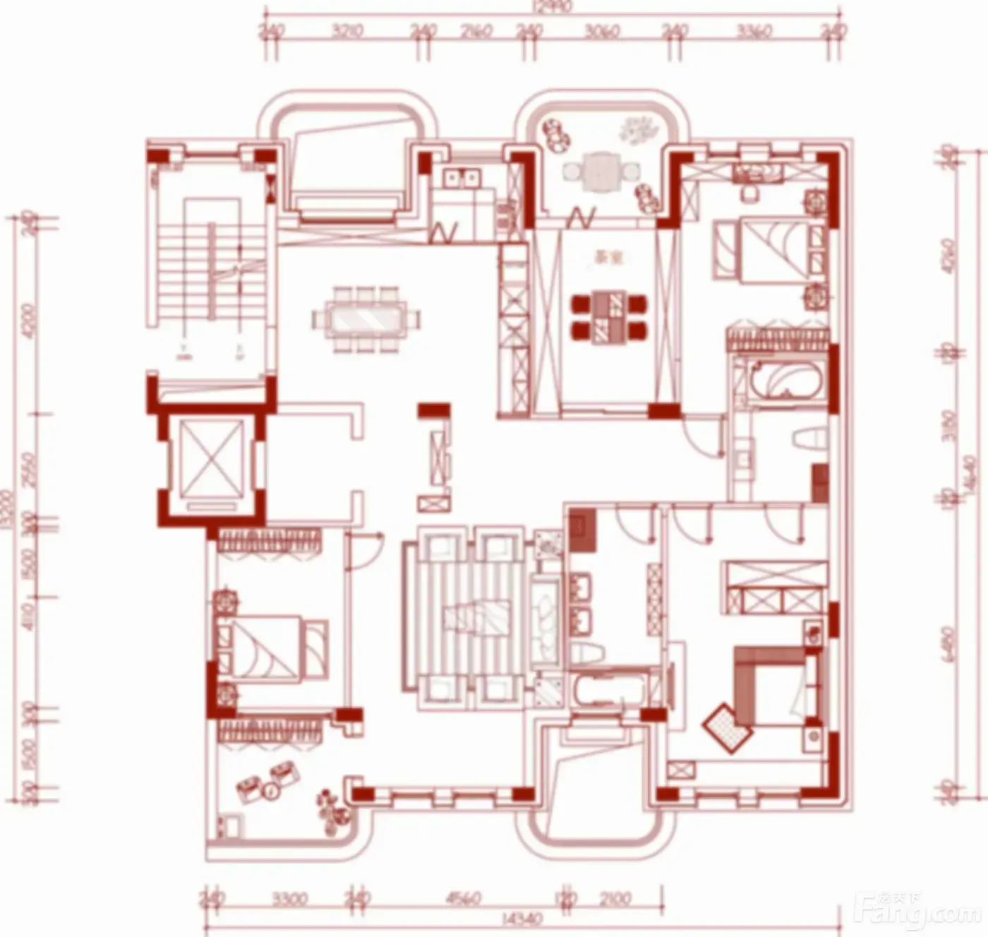 户型是4室2厅2卫,南北朝向