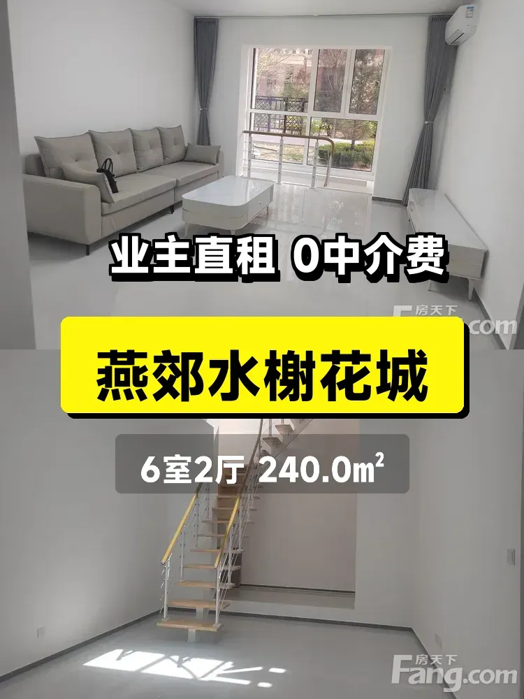 标题:燕郊水榭花城240㎡复式楼首次出租!南北通透大六居✨