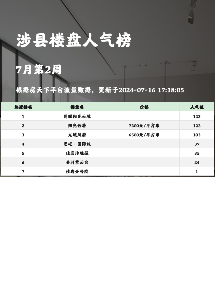 买房选房是人生大事,关注人气楼盘榜单可以帮助购房者快速了解市场动态和热门楼盘。选择一个合适的楼盘不仅关系到未来生活的便利性,还直接影响到房产的增值空间。接下来,我们一起来看看涉县的人气楼盘榜单,看看这些楼盘的优缺点吧~