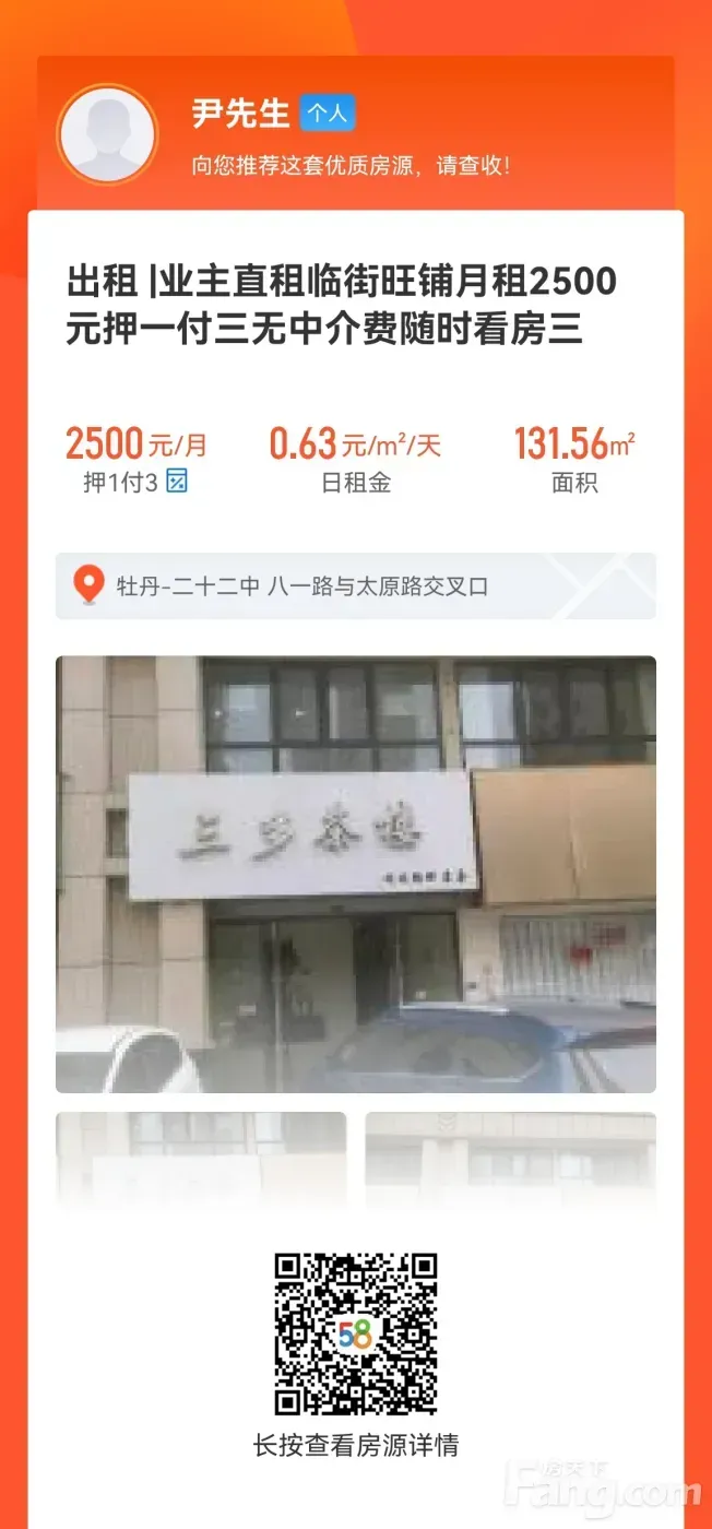 商铺,租金2500元/月,押一付三
