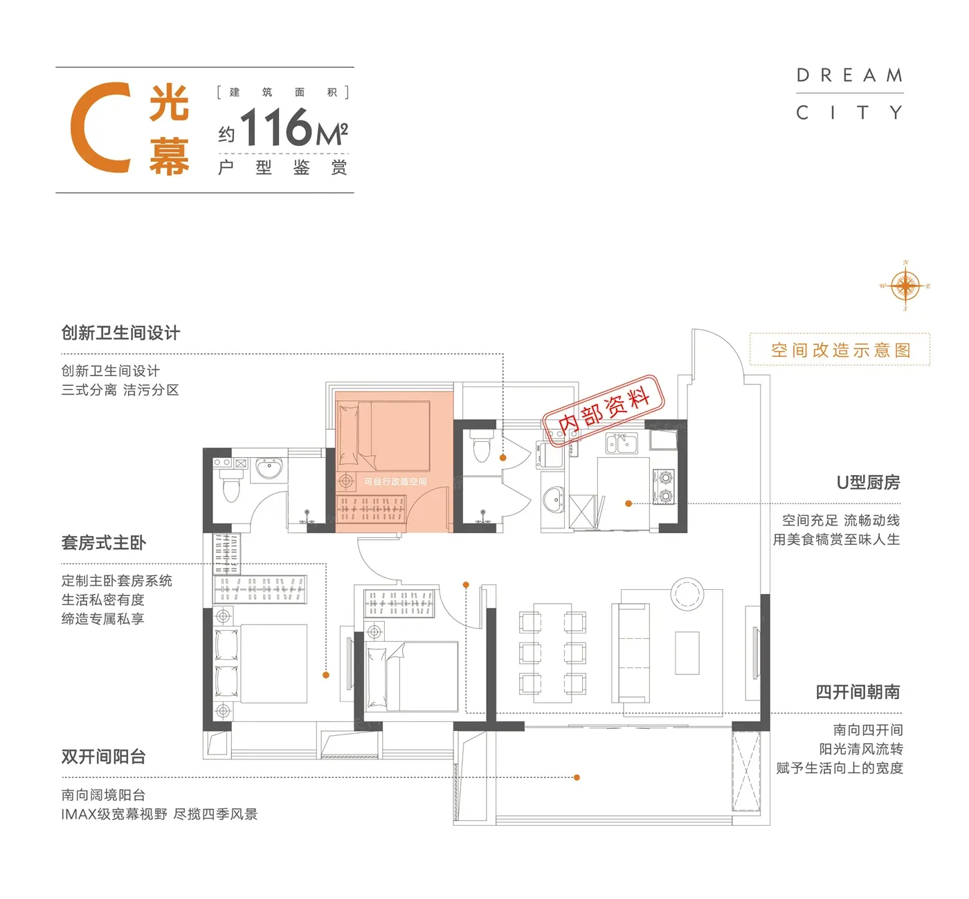 更绝的是116㎡户型,主卧开间做到3.6米,放得下双人床+婴儿床+尿布台,对新手爸妈太友好。不过要提醒看中卫浴体验的朋友,除主卫外其他卫生间都没做干湿分离,这点不如隔壁保利紫云。