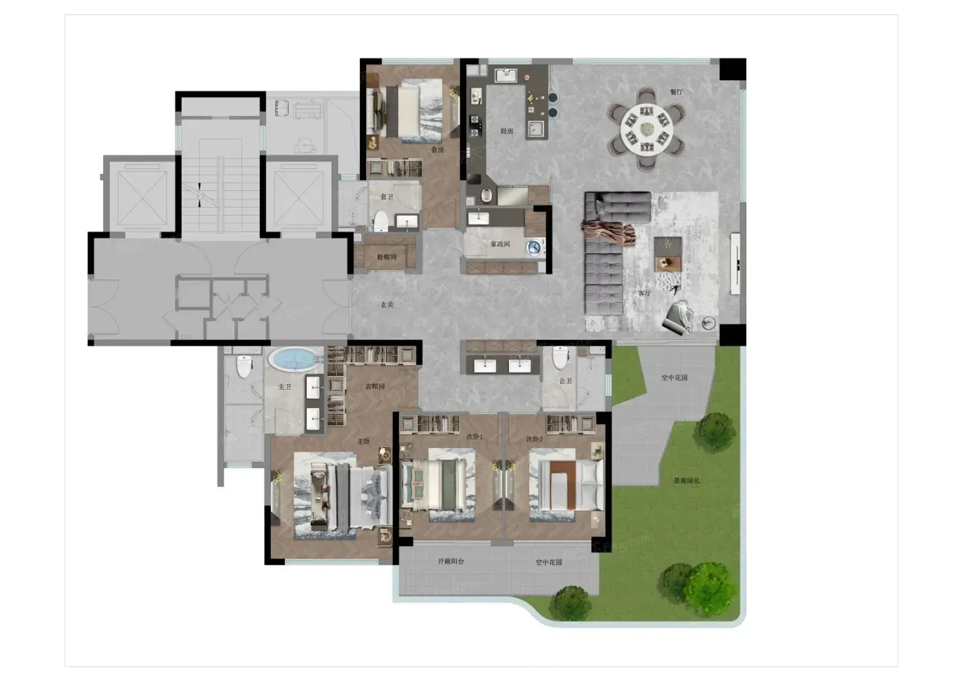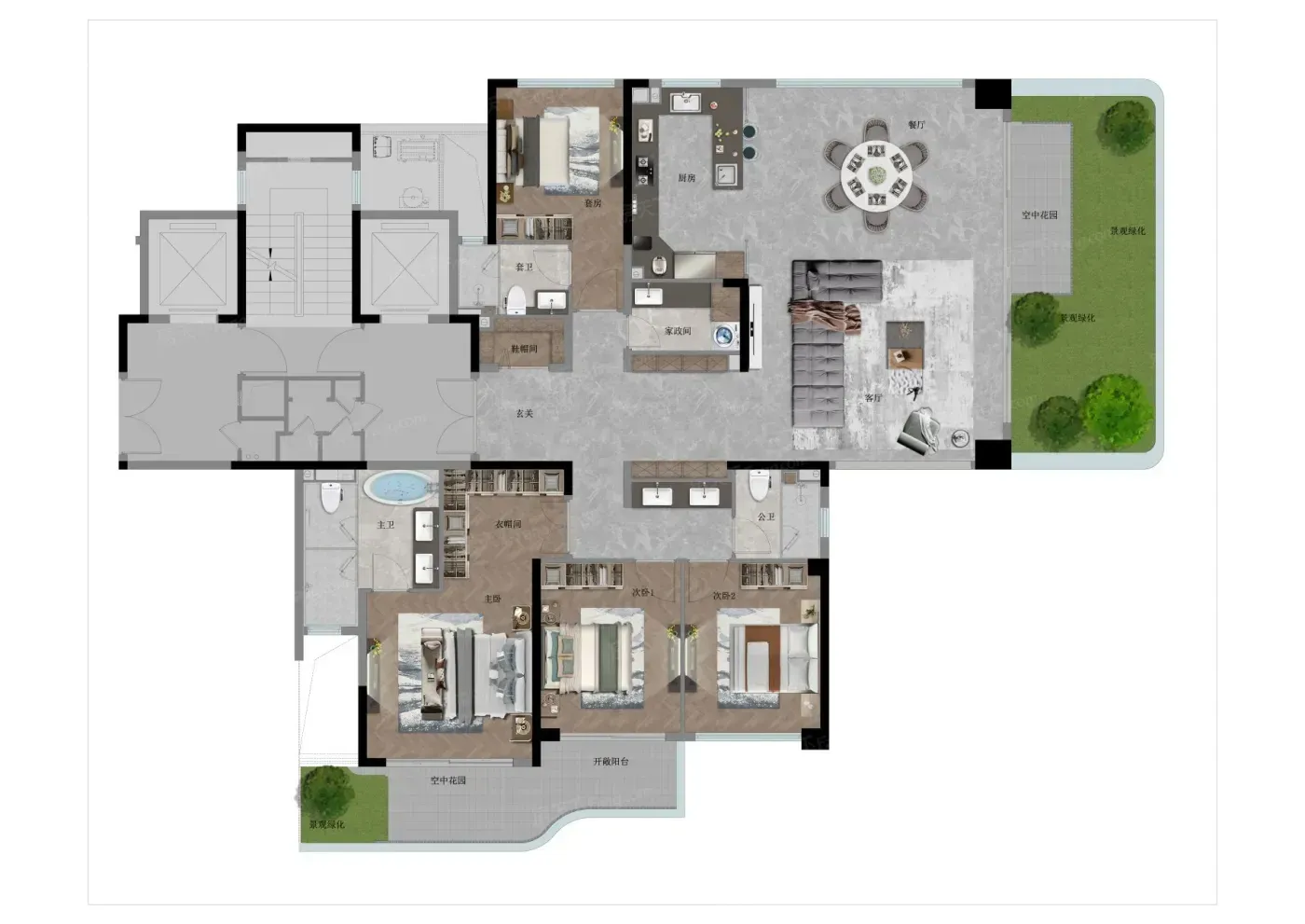 项目首创垂直森林设计,每户标配约45㎡空中花园,270°环幕视野把南艳湖框成私家景观。1.8容积率配40%绿化,双套房+独立家政间设计,实测得房率120%确实能打。滨湖金融板块+地铁1号线,配套成熟度吊打新区。