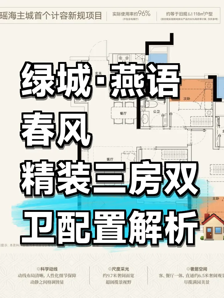 绿城首进瑶海确实惊艳:97㎡做三房双卫,全系落地窗+LDK一体化设计,厨房预留管线机接口,浴室暗装花洒,精装细节吊打同价位竞品。但三个现实要注意: