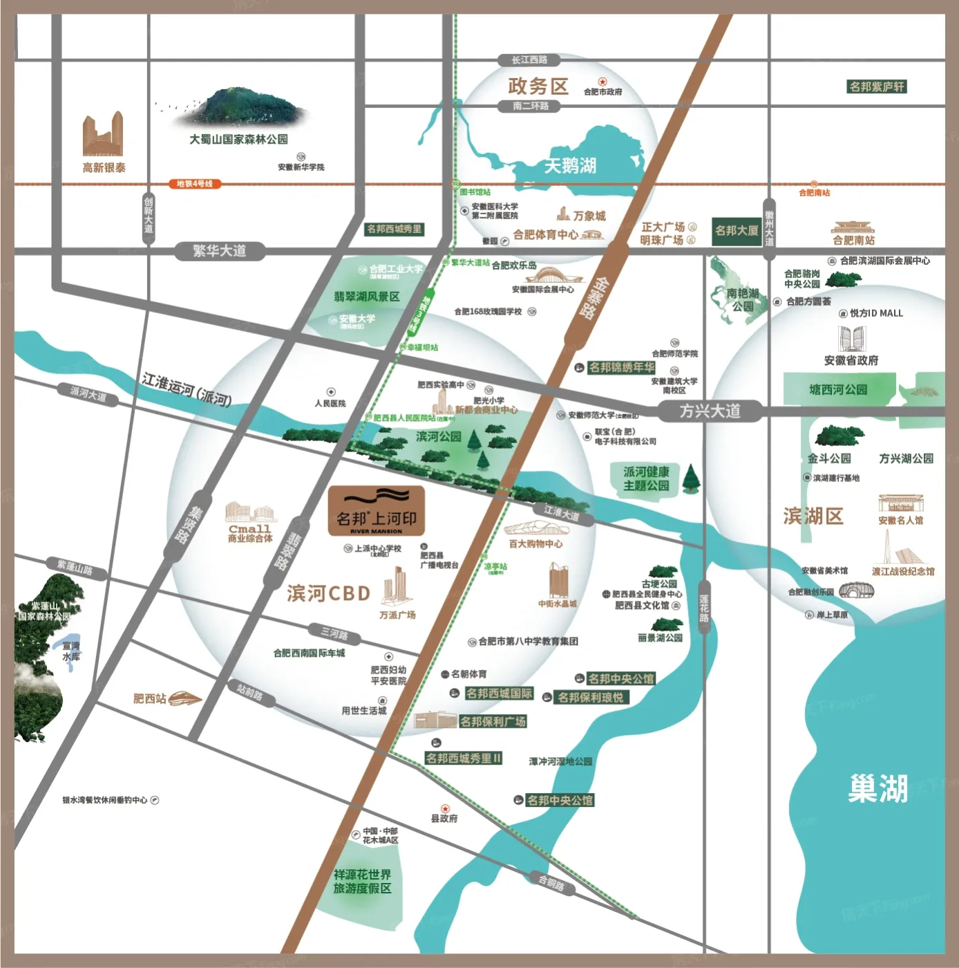 "这位置绝了!"闺蜜在电梯里刷到上河印时,我正堵在去政务区的路上。名邦在合肥西南布局的第十一座作品确实有意思:地铁3号线芮祠站步行实测8分钟,方兴大道一脚油门直达奥体中心,金寨路高架串联滨湖与老城。但要说打动我的,是它143㎡户型的飘窗台——足足4米长,摆满绿植后竟能留出咖啡角,这种空间设计在肥西实属难得。