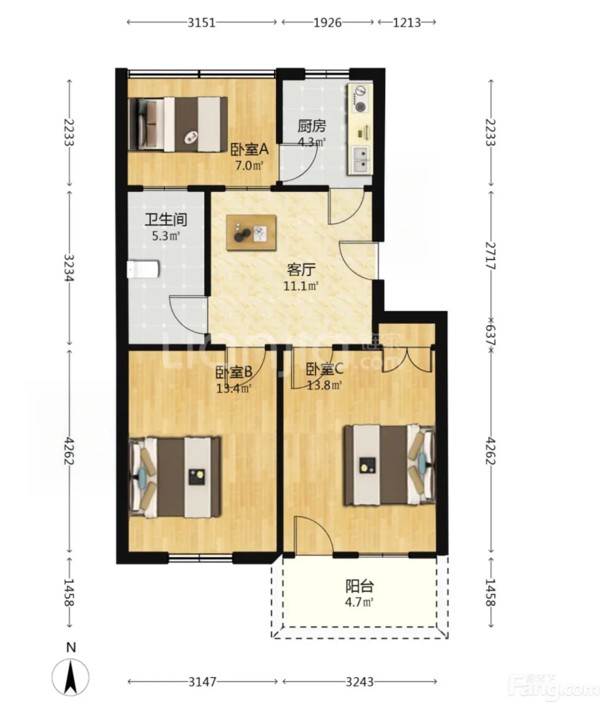 房子在2楼(总4层),69.53㎡做了3室1厅,东南向全天亮堂堂的🌞!老小区邻里特别和睦,楼道每天都有人打扫。自己家重新刷过墙,地板也保养得不错,拎点软装就能住~