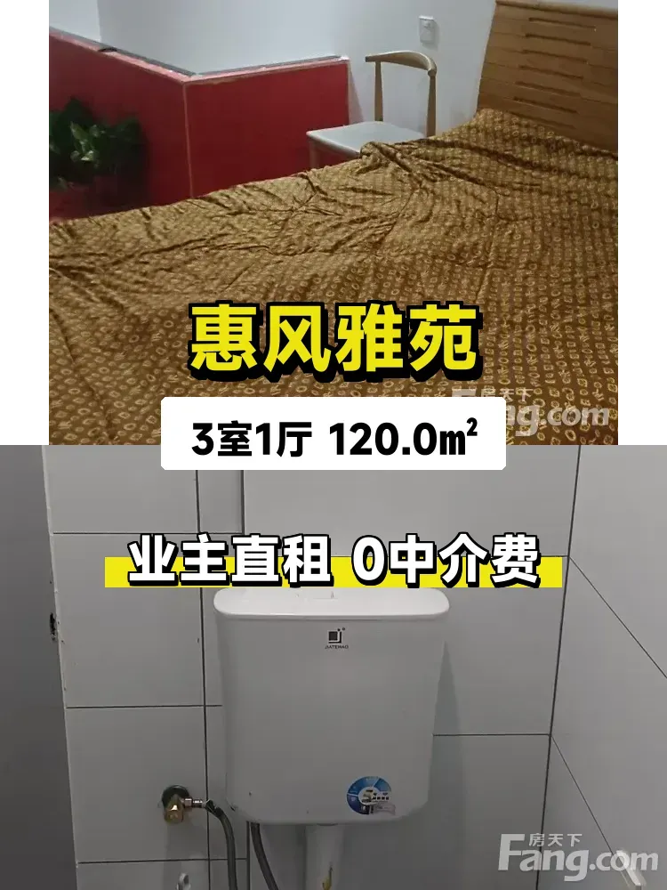 标题:自家惠风雅苑三居室首次出租!南北通透120平只要800💰