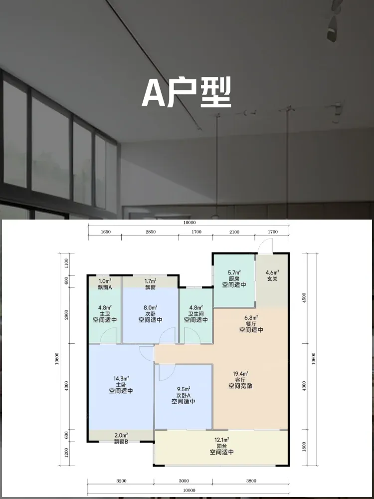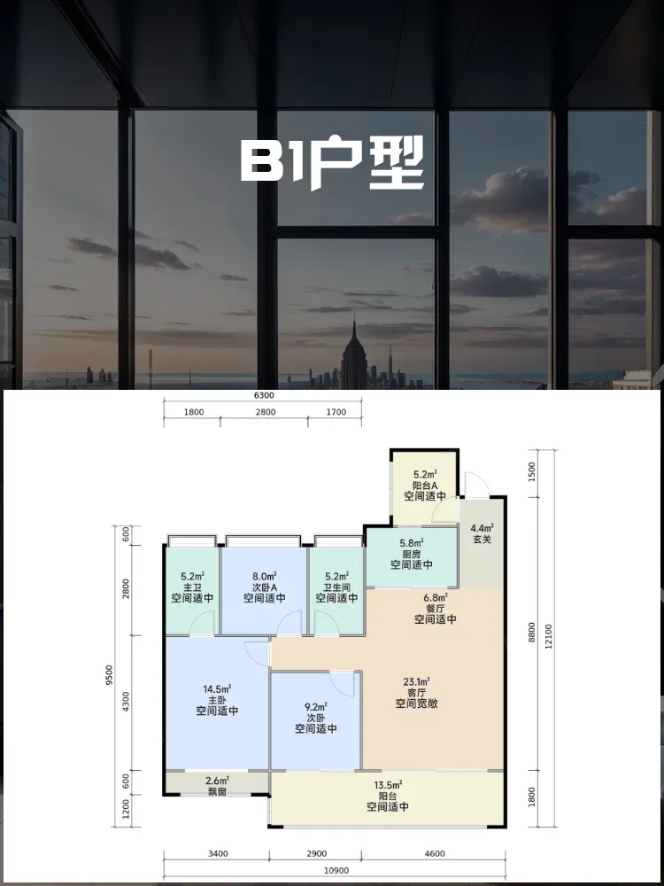 💡横厅设计让客厅开间达4.2米,搭配1.8米宽景观阳台,看江景的视野绝绝子🌊!