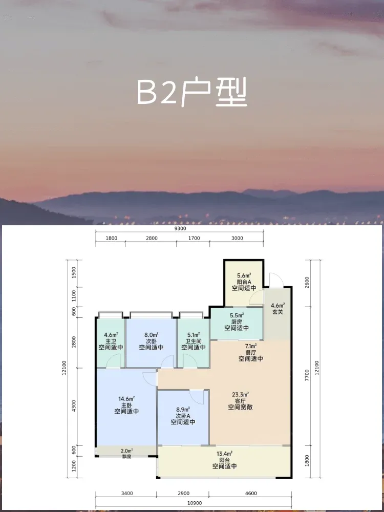 💡主卧采用套房设计,自带独立卫浴+3.2米进深衣柜区,但次卧面积仅9㎡略显紧凑。