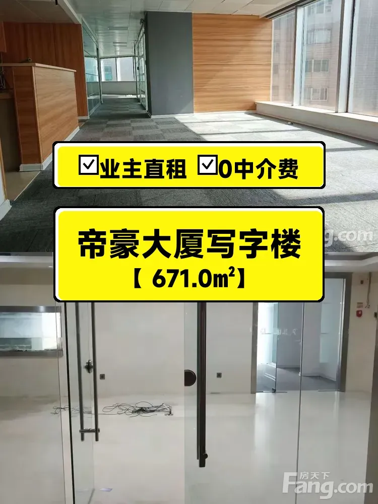 自家帝豪大厦写字楼出租🔥671平高区景观办公空间,业主直租无中介费!