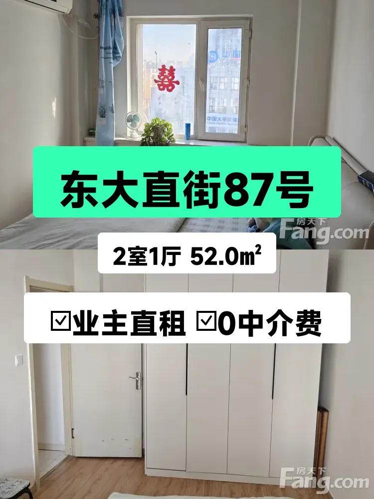 房子在 **哈尔滨南岗区东大直街87号**,7楼(共7层),南北通透,阳光超级好☀️!52㎡的两室一厅,虽然不大,但布局特别合理,自己住或者小两口住都很舒服~之前我住的时候,朋友来玩都说“麻雀虽小五脏俱全”😆。