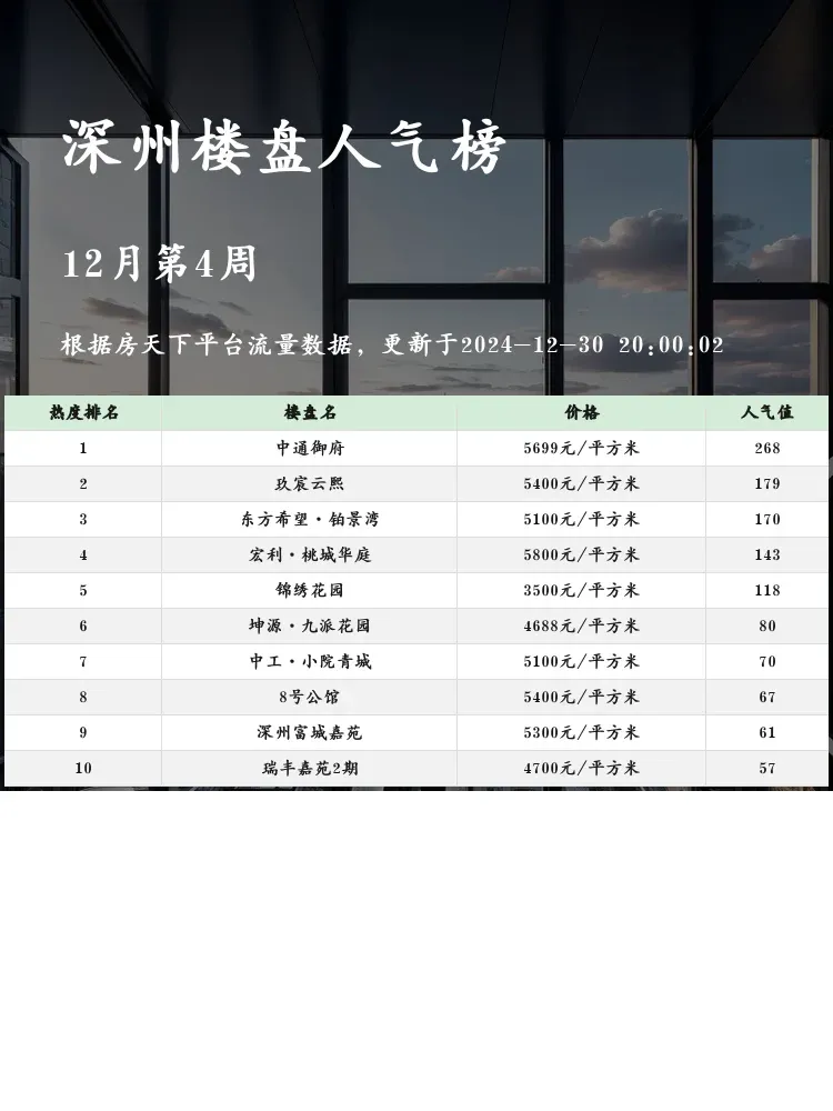 购房者选择合适的楼盘,如同挑选人生伴侣,既要有颜值,也要有内涵🏡✨。在当下的楼市中,了解热销楼盘的信息非常重要,这不仅帮助购房者关注市场热点,也为未来的置业提供了专业的参考。现在就让我们一起看看深州区域的楼盘人气榜单,看看哪些楼盘值得关注吧!