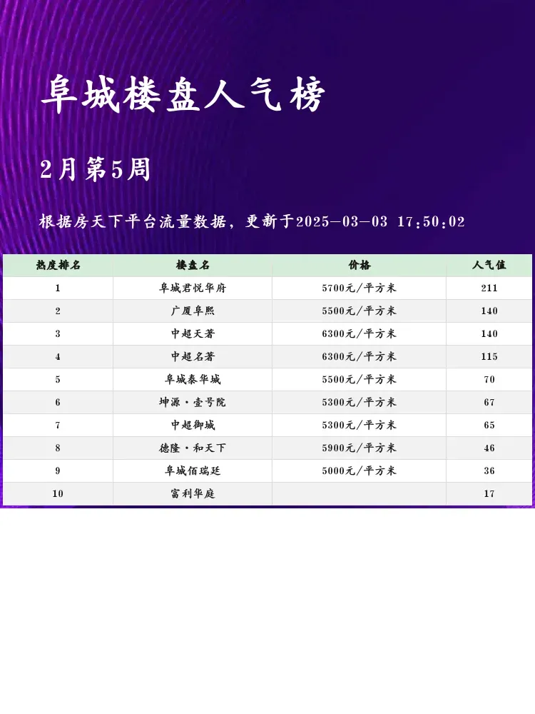 这份榜单帮你快速了解阜城热门楼盘,选房更省心!💡