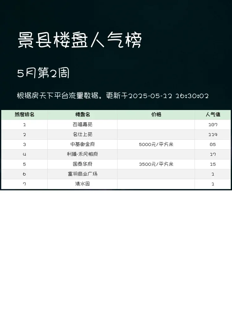 买房选对楼盘太重要啦!🔥这份景县最新人气榜单帮你避开雷区~当前市场下,核心逻辑是"配套+性价比+居住舒适度"三平衡✨榜单综合交通、教育、户型等硬指标,给准备上车的宝子们最实用的参考💯