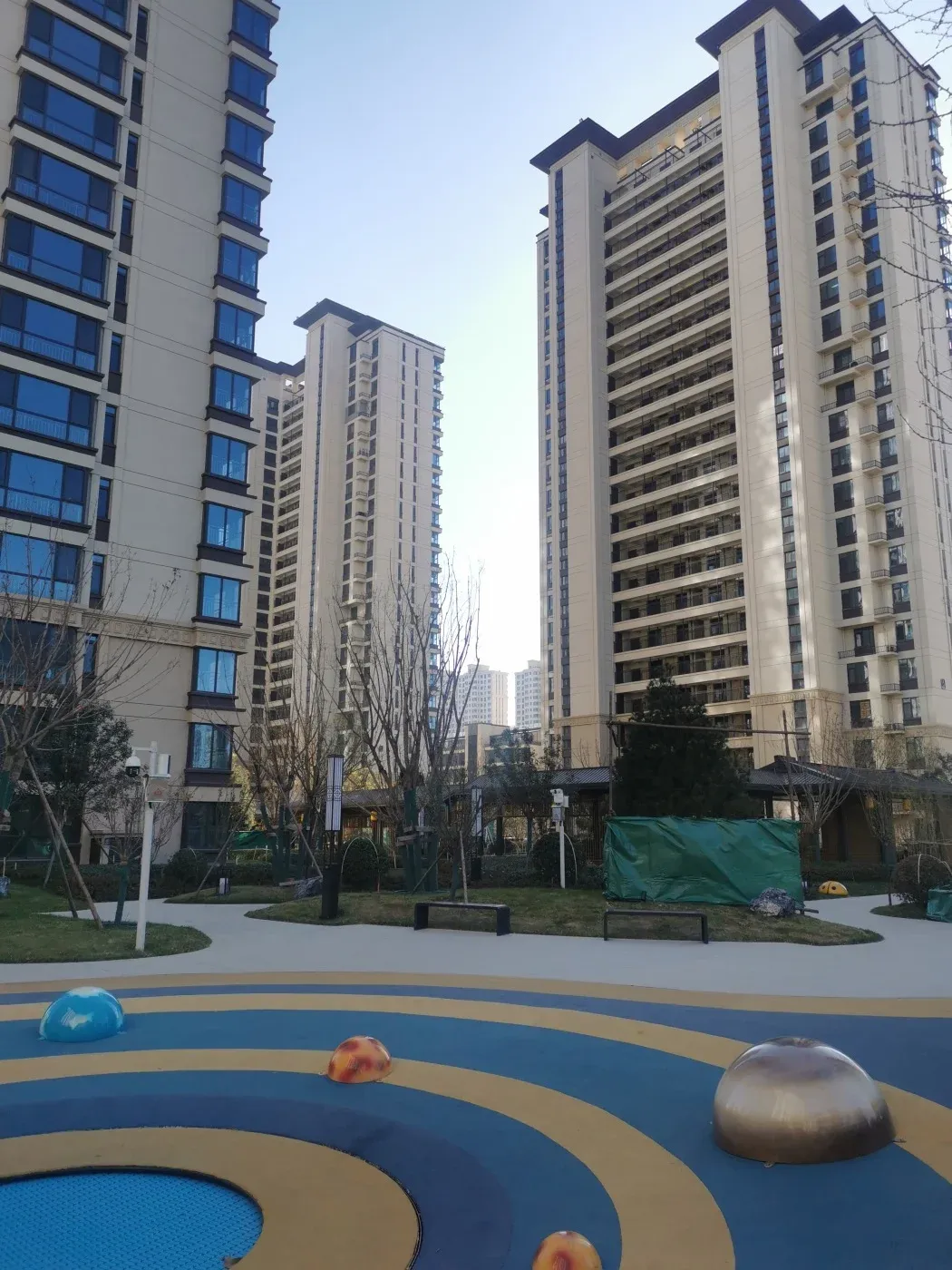 1. 容积率2.5搭配35.24%绿化率,楼间距适中,社区内预留较多公共绿地空间。