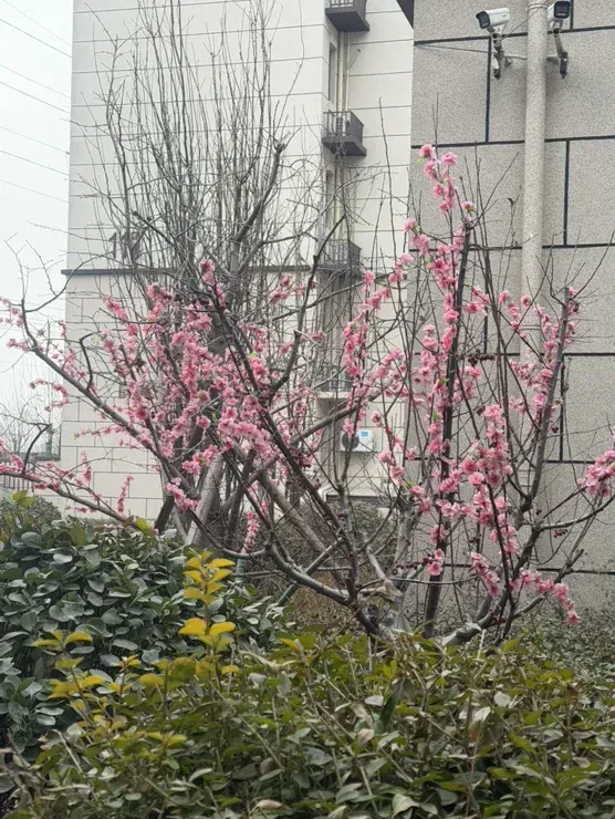 别人还在等春暖花开,咱小区直接把春天‘绑’在枝头上了,这粉花一挂,下楼散步都像在逛花园啦[呲牙]🌸