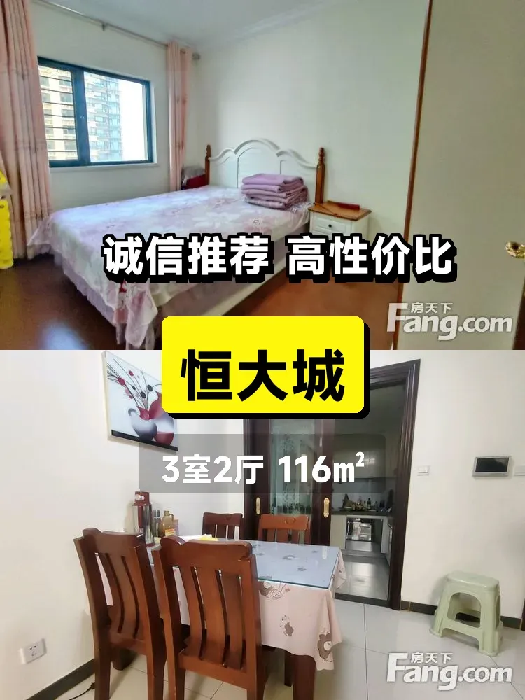 这套房真的绝了!恒大城116平精装三居室,业主诚心卖,66.6万就能拿下💥