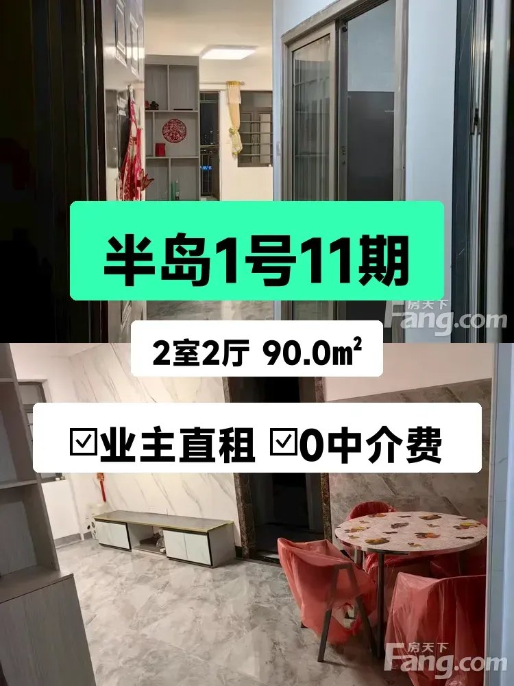 标题:自家半岛1号90平南向两房出租✨ 采光无敌通勤超方便!