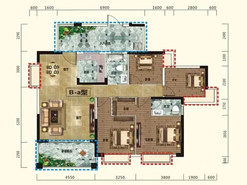 户型是4室2厅2卫,南北朝向
