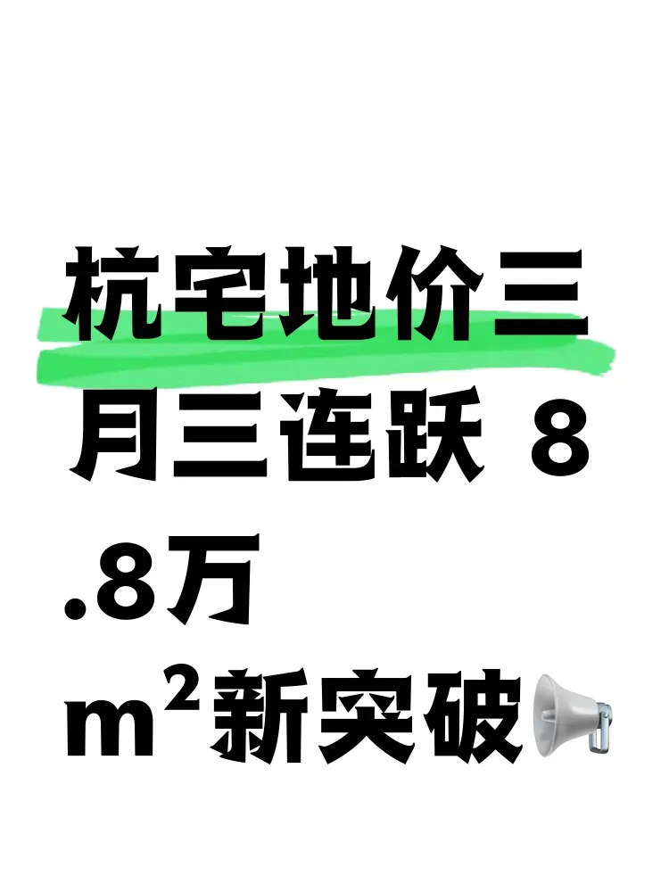 家人们!见证历史性时刻!杭州核心地块单价上演惊人三连跳!从年初的6.48万/㎡一路飙升到8.8万/㎡,短短三个月刷新三次纪录!这背后究竟藏着怎样的财富密码?是城市能级跃升的信号?还是楼市回暖的先兆?快来评论区分享你的观察!