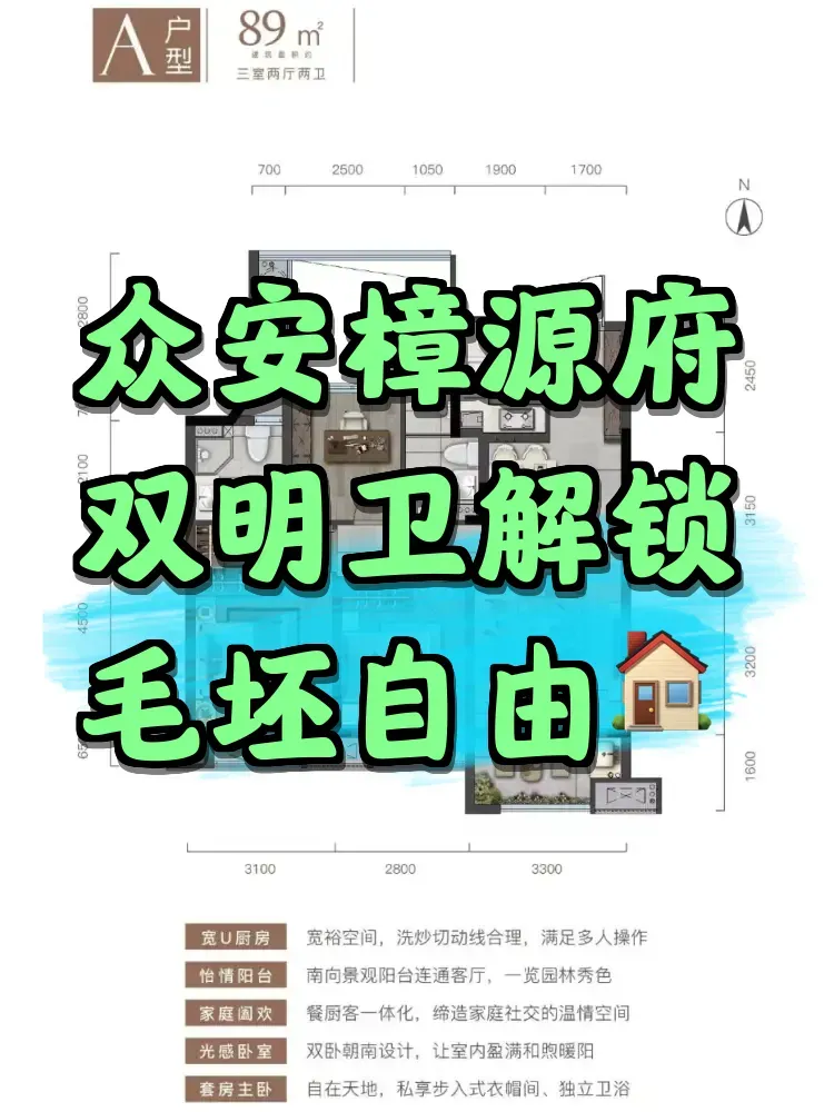 最近在萧山党湾镇踩盘时,发现了件有趣的事:90后购房者小陈原本想买精装房,结果看完众安樟源府的毛坯89㎡三房后当场改主意。这个户型用双明卫+方正格局,硬生生在控总价时代抢出了双套房配置。更绝的是,开发商居然把户型图纸做成"装修白皮书",手把手教你怎么用7米大阳台做亲子空间。