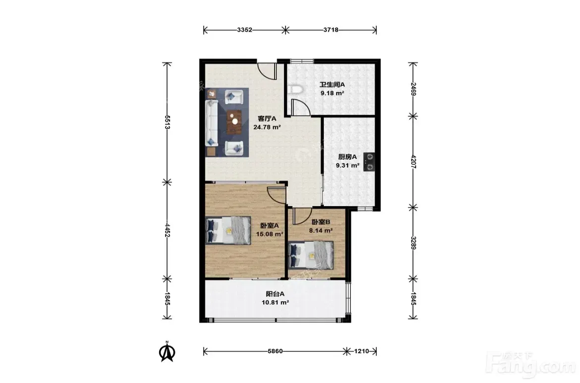 标题:自家滨江好房急售!南北通透两居室🏠