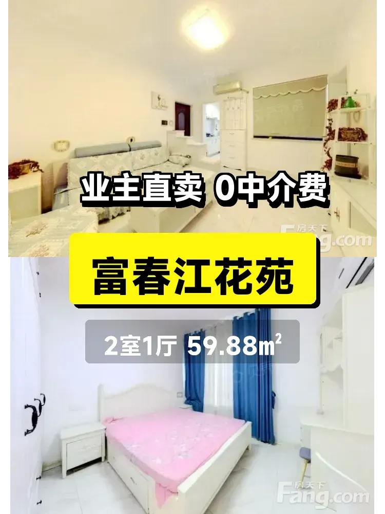 忍痛割爱!这套富春江花苑的自家房子真的要出手了😭 18年交付的次新房,保养得像刚入住一样✨ 59.88㎡做成了超实用的两室一厅,主卧次卧都朝南🌞 冬天阳光能晒到被子上!
