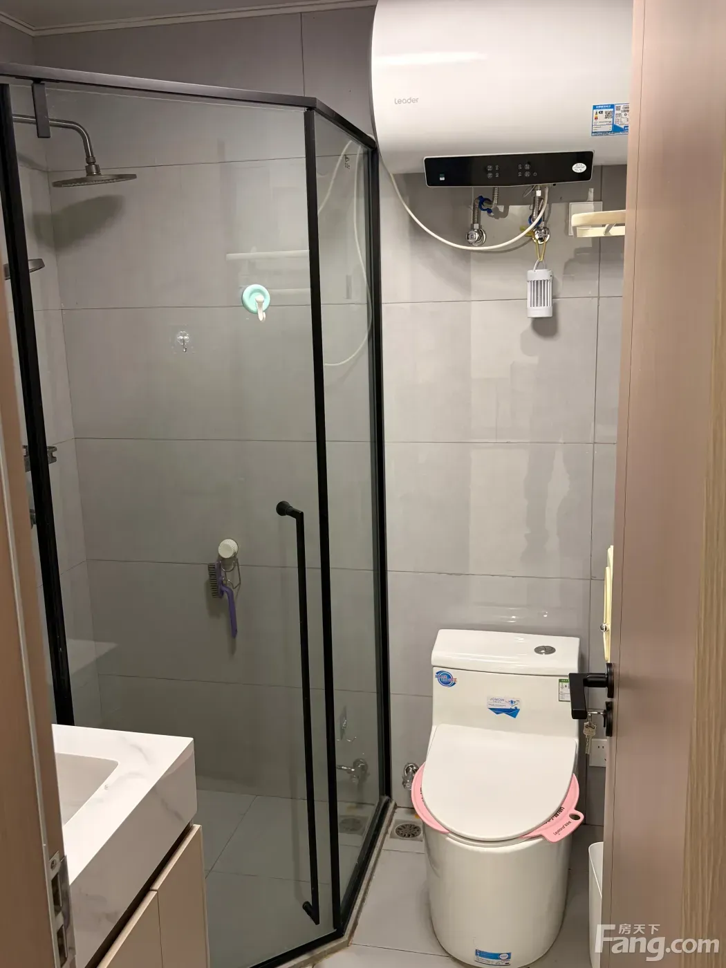卫生间是干湿分离的设计,淋浴房、马桶、热水器都是好的。全屋瓷砖地面,打扫起来特别轻松🧹。
