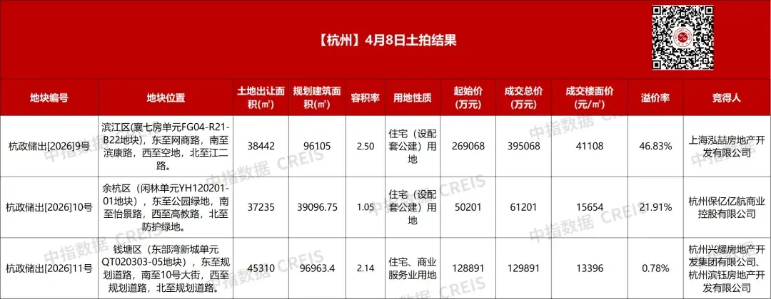 📰 2026年4月8日,杭州土拍市场迎来新资讯。
