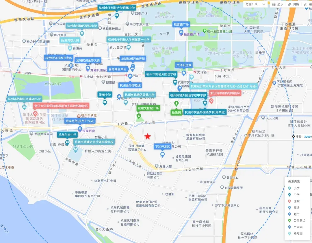 🎓 周边生活氛围浓厚,教育、商业、医疗配套完善,地块3km范围内聚集了区重点小学杭州电子科技大学附属第一小学。