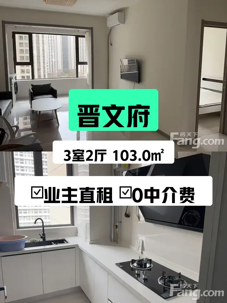 标题:晋文府精装三居首次出租!南北通透103平只要1800💰