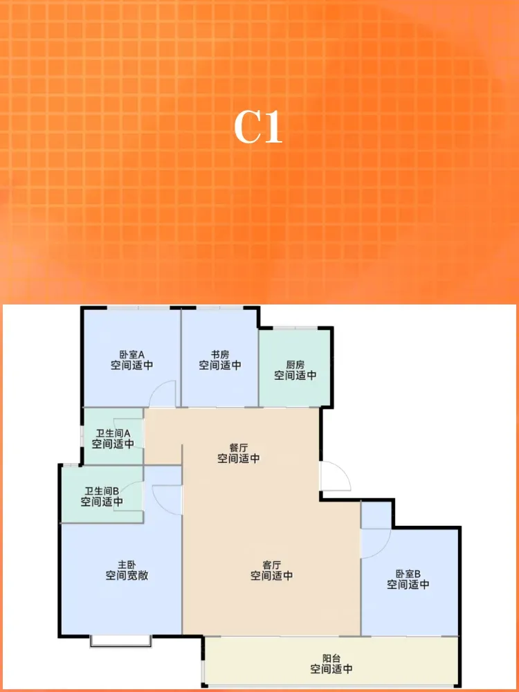 **C1户型:128㎡ 4室2厅2卫**