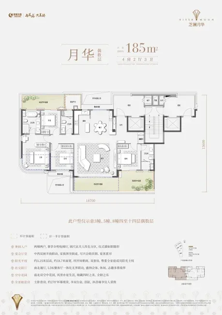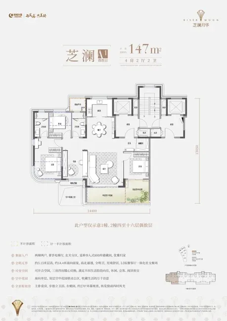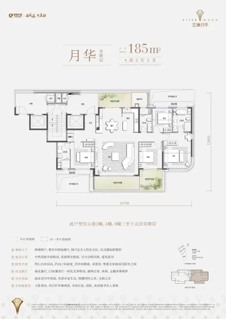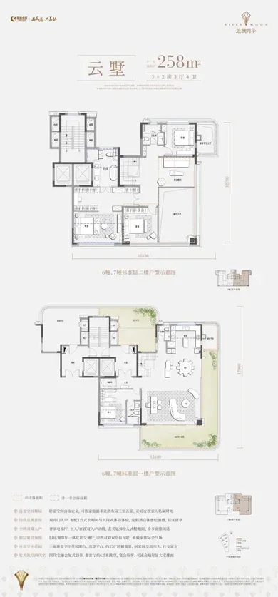 绿城义乌芝澜月华户型图:计容面积:147-185-258(复式)