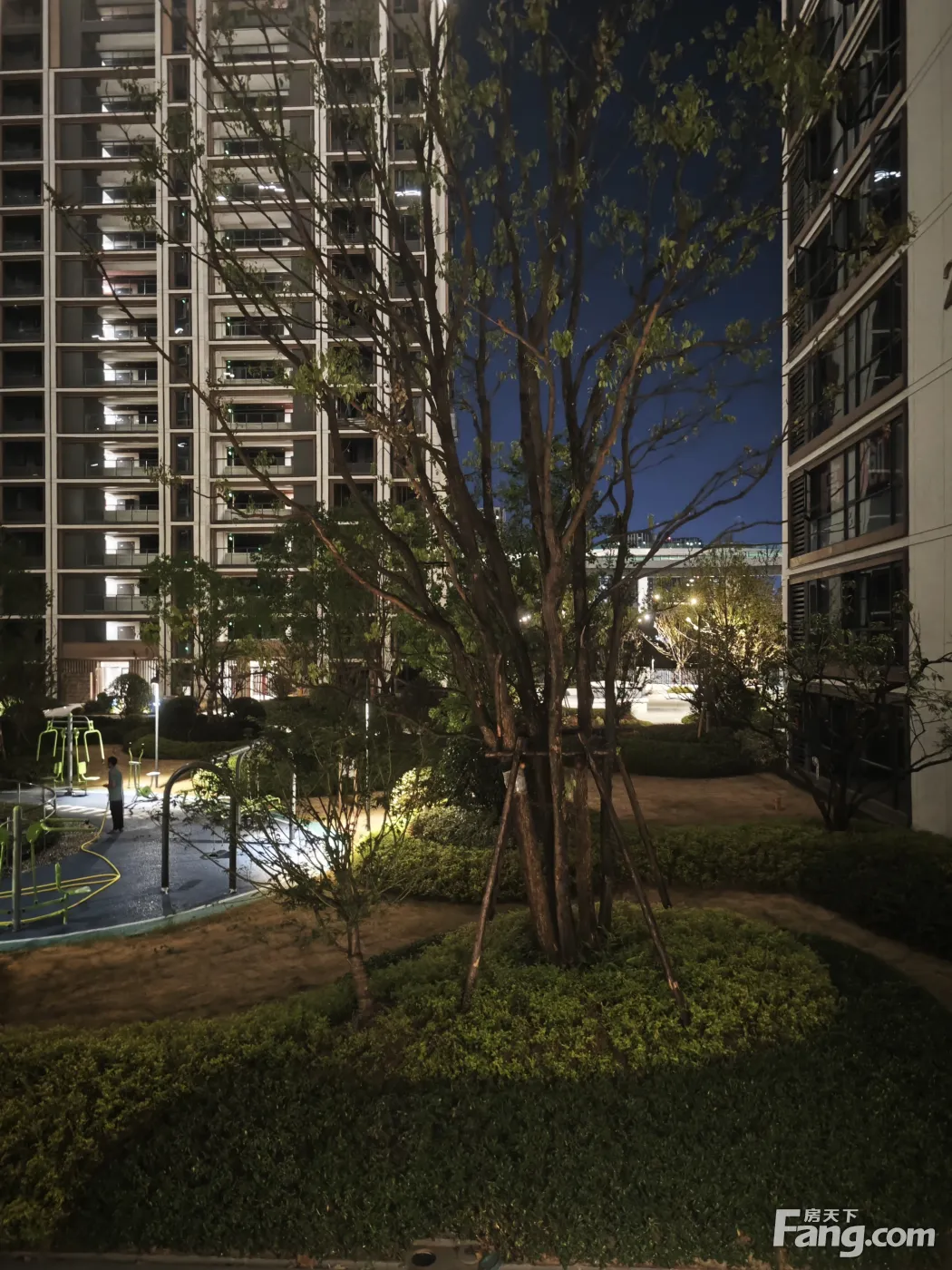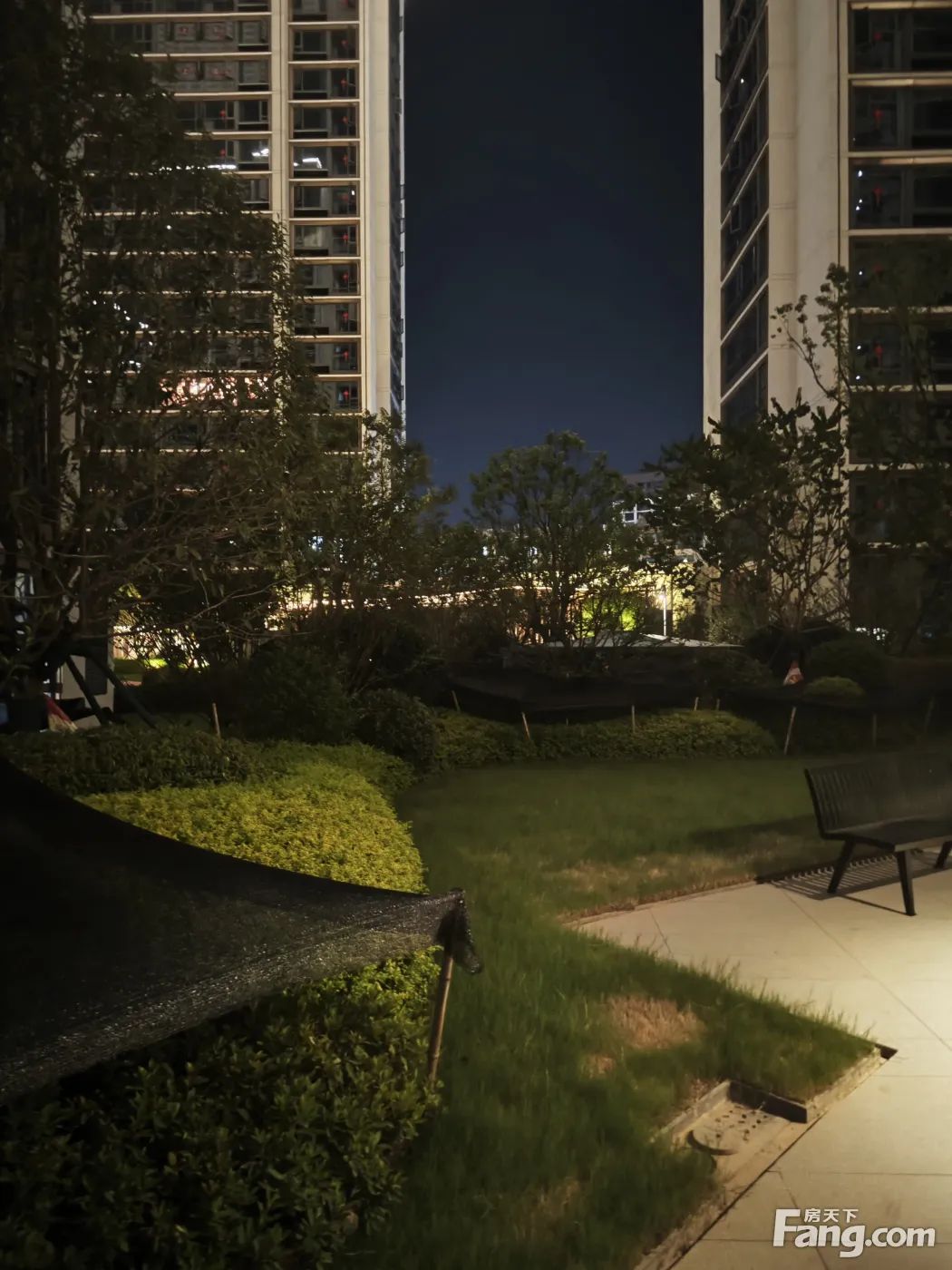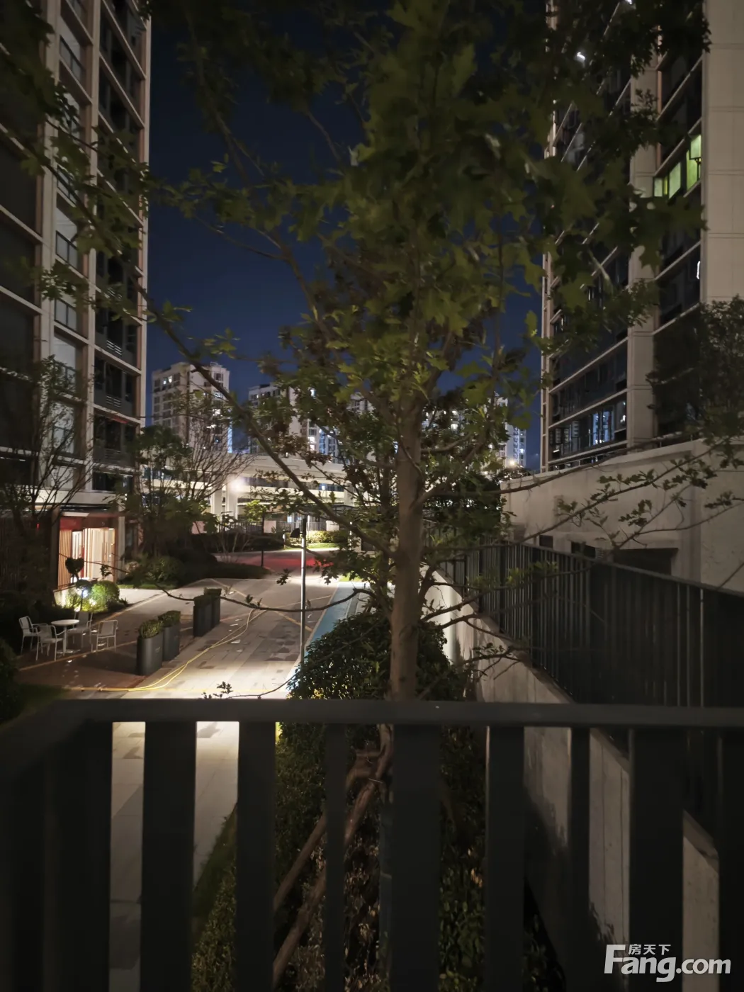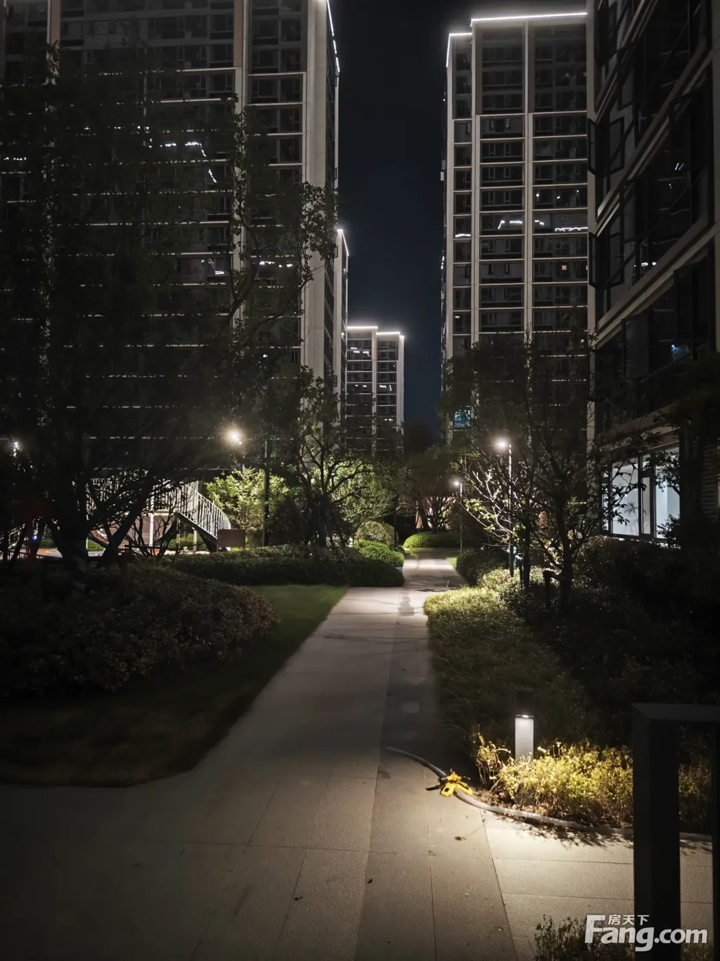 小区晚上的景色。