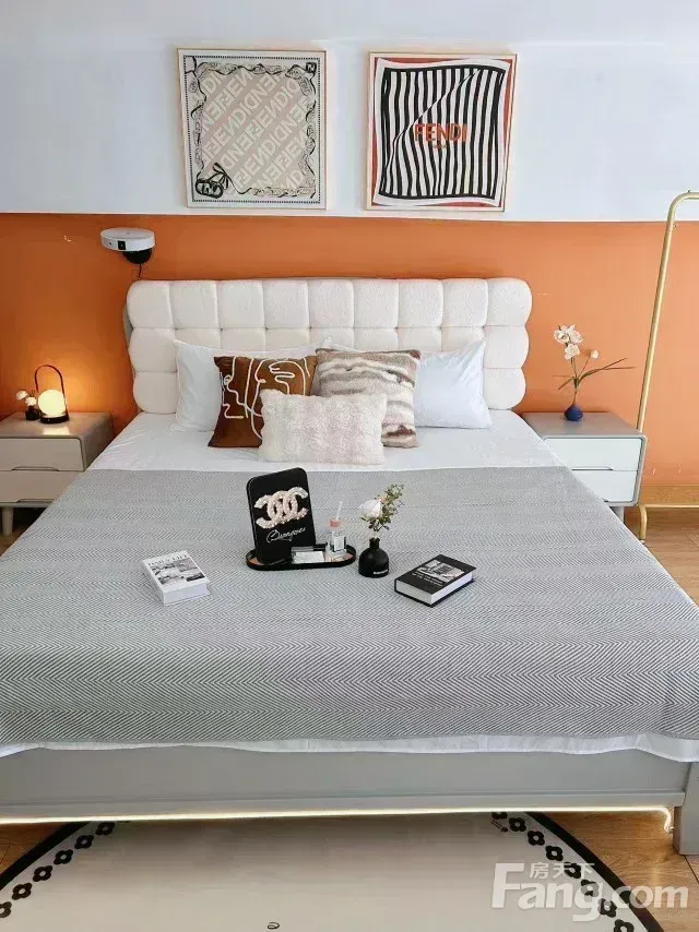 ✔️ **卧室超治愈**:软包床头靠着超舒服,暖调灯光一开,加班回家瞬间被治愈💤