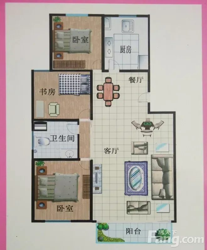 户型是3室2厅1卫,南朝向