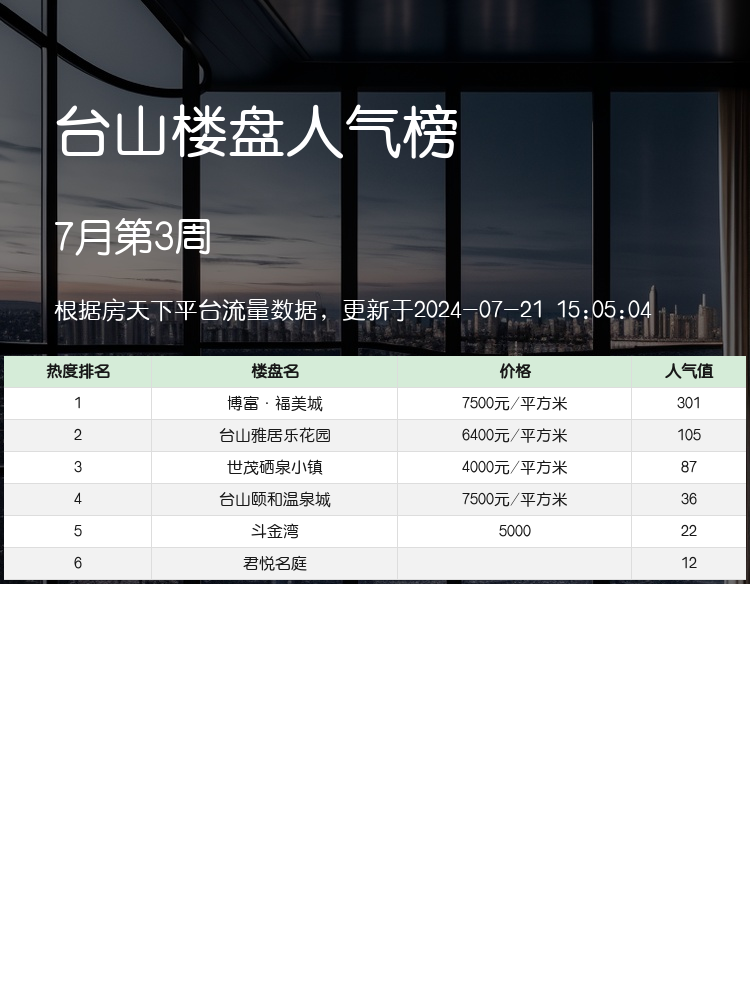 ✨小伙伴们,关注人气楼盘榜单真的超级重要!🏠对于购房者来说,在当前市场中买房选房的核心逻辑是找到性价比高、配套完善、交通便利的楼盘。今天为大家带来了台山最🔥的人气楼盘榜单,赶快看看哪几个楼盘最值得关注吧!